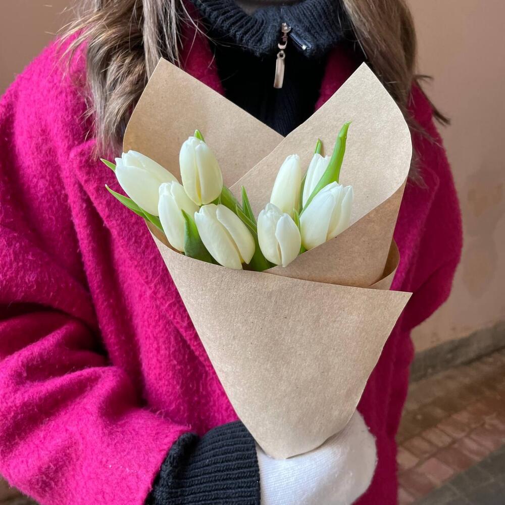 Крафтовая упаковка – 1 шт.Белый тюльпан – 9 шт.