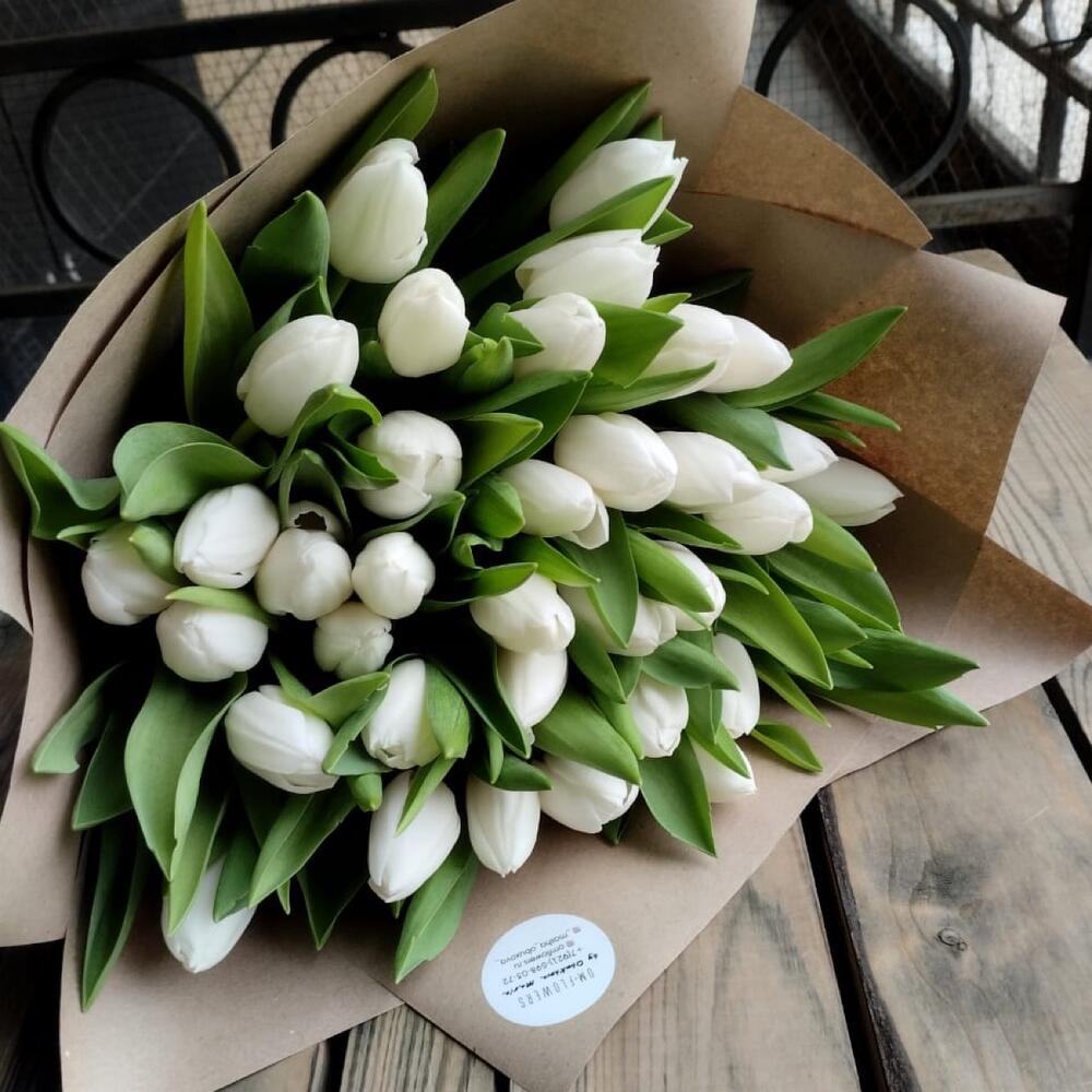 Тюльпан белый – 35 шт.Крафт упаковка – 1 шт.бечевка натуральная – 1 шт.