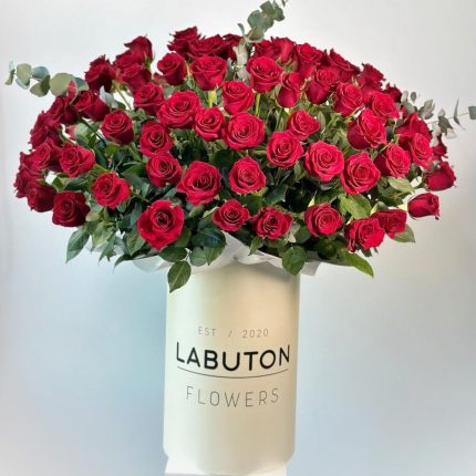 15 красных роз в шляпной коробке